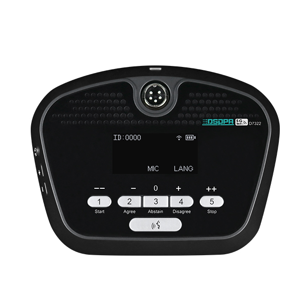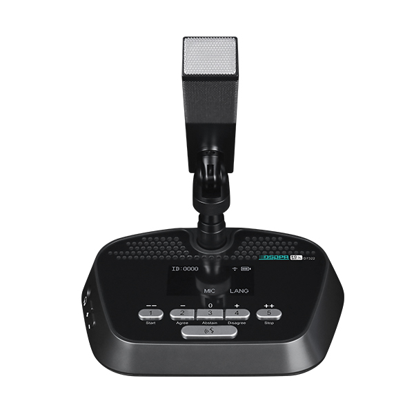 D7322 Micro đại biểu không dây sử dụng wifi 5G được trang bị Micro cần vuông có chức năng bỏ phiếu. Micro được tích hợp sẵn Pin 10000mAh cho phép đàm thoại liên tục trong khoảng 8 giờ