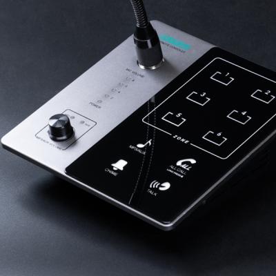 Có hai giao diện RJ45 để điều khiển vùng và chức năng ghi đè. Khi kết nối nhiều trạm thông báo với một cổng duy nhất, bộ khuếch đại trộn có thể hỗ trợ tối đa 6 trạm thông báo trên một cổng, với khoảng cách truyền tối đa 300m. Nếu chỉ kết nối một trạm thông báo với bộ khuếch đại trộn, khoảng cách truyền có thể lên đến 600m. Micro thông báo không cần bộ chuyển đổi nguồn riêng và được cấp nguồn và nhận tín hiệu âm thanh từ bộ khuếch đại 6 vùng dòng DMA. Lưu ý: Mỗi máy chủ hỗ trợ tối đa 6 micro thông báo từ xa.